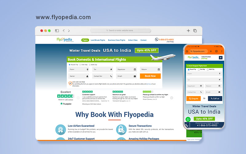 Flyopedia.com is an excellent choice for securing the Best last minute flight deals to India from USA. The website offers competitive pricing by comparing fares across various airlines, ensuring you find the most affordable options. Flyopedia offers exclusive discounts, including up to 45% off during festive seasons and special unpublished deals for phone bookings, making spontaneous travel affordable. This ensures you can secure great flight deals even at the last minute. The platform offers transparent pricing with no hidden fees, allowing for a smooth booking experience. Moreover, their team of travel experts is ready to assist you with personalized support, helping you find the best routes and accommodating specific travel needs. Flyopedia caters to unpredictable schedules with flexible booking options, making it a reliable choice for last-minute travellers. For more details, you can visit Flyopedia directly.