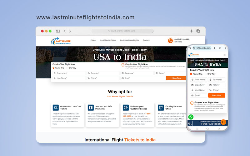 Lastminuteflightstoindia.com is a trusted source for booking last-minute flights from the US to India. They specialise in offering economical ticket options, attractive discounts and exclusive deals to meet your travel requirements. The website has a simple booking interface that allows you to compare several airlines and flight itineraries.