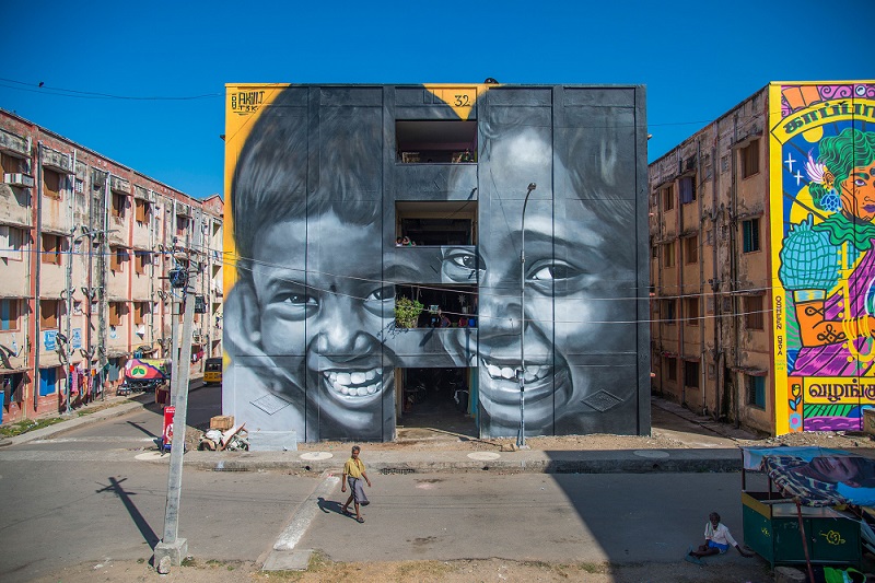 Kannagi Nagar is in Chennai and has become the city’s first art area. The core theme of the whole mural is “People and Environment”, which is focused on the concept of mobility and people’s livelihood. The mural is any artwork applied directly or painted on a wall, ceiling, or other permanent substrates that people may connect and communicate with.